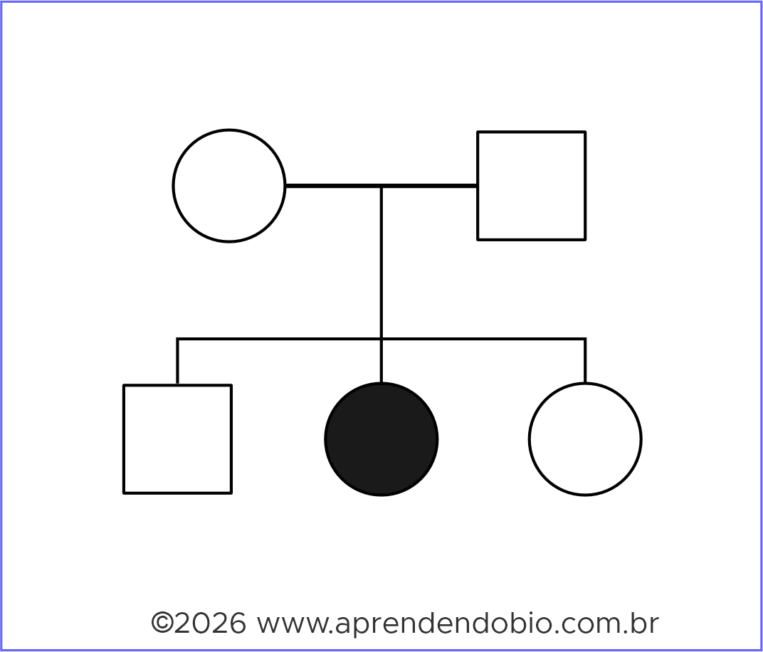 Na Figura 3, o surgimento de indivíduo afetado a partir de pais fenotipicamente não afetados aponta para a necessidade de ambos os genitores carregarem o alelo recessivo. Em um modelo mendeliano simples, isso significa que cada um deles é heterozigoto. A partir desse ponto, a interpretação deixa de ser apenas visual e passa a depender de inferência genotípica.