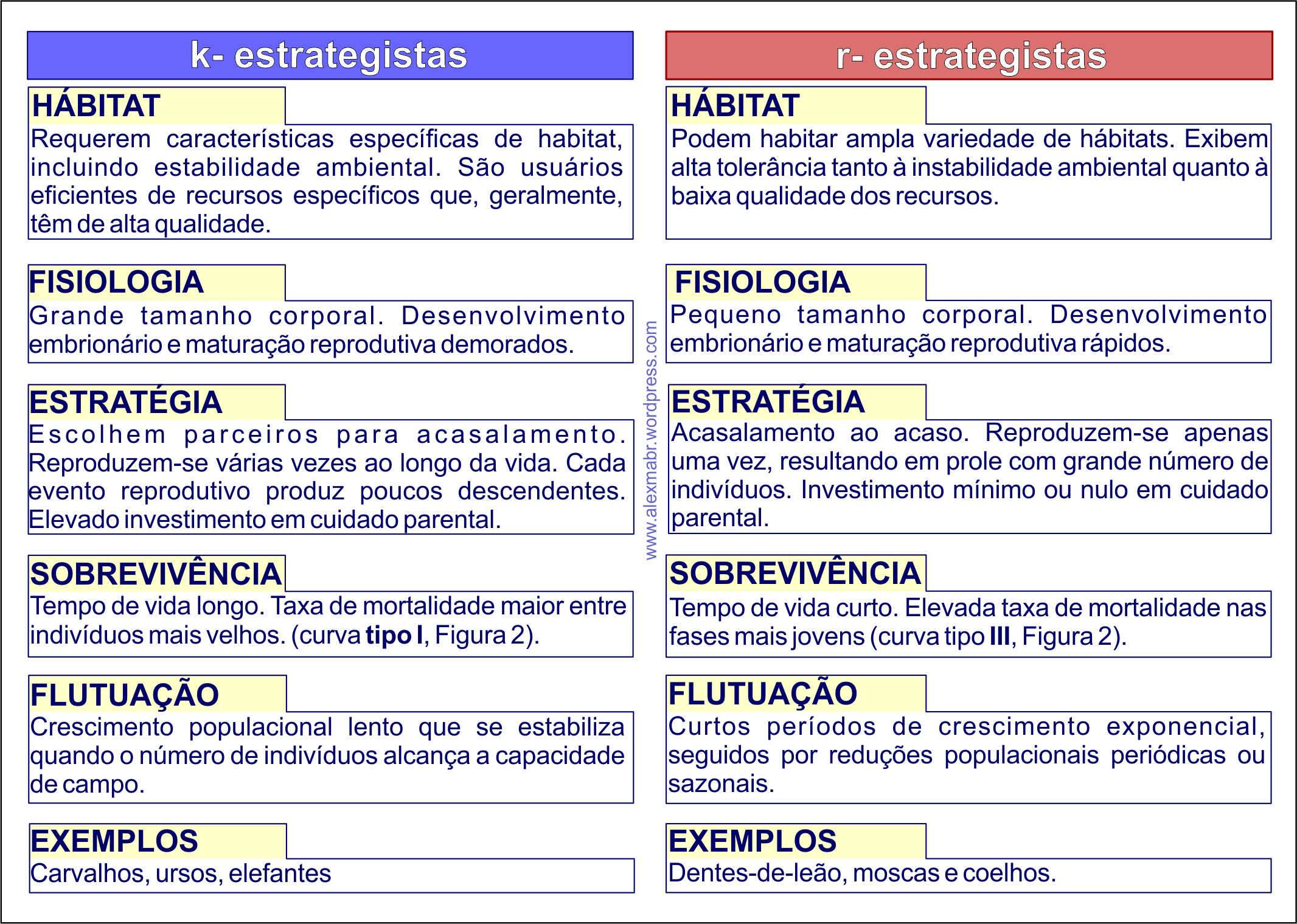 A tabela a seguir compara algumas características dos estrategistas r e k.
