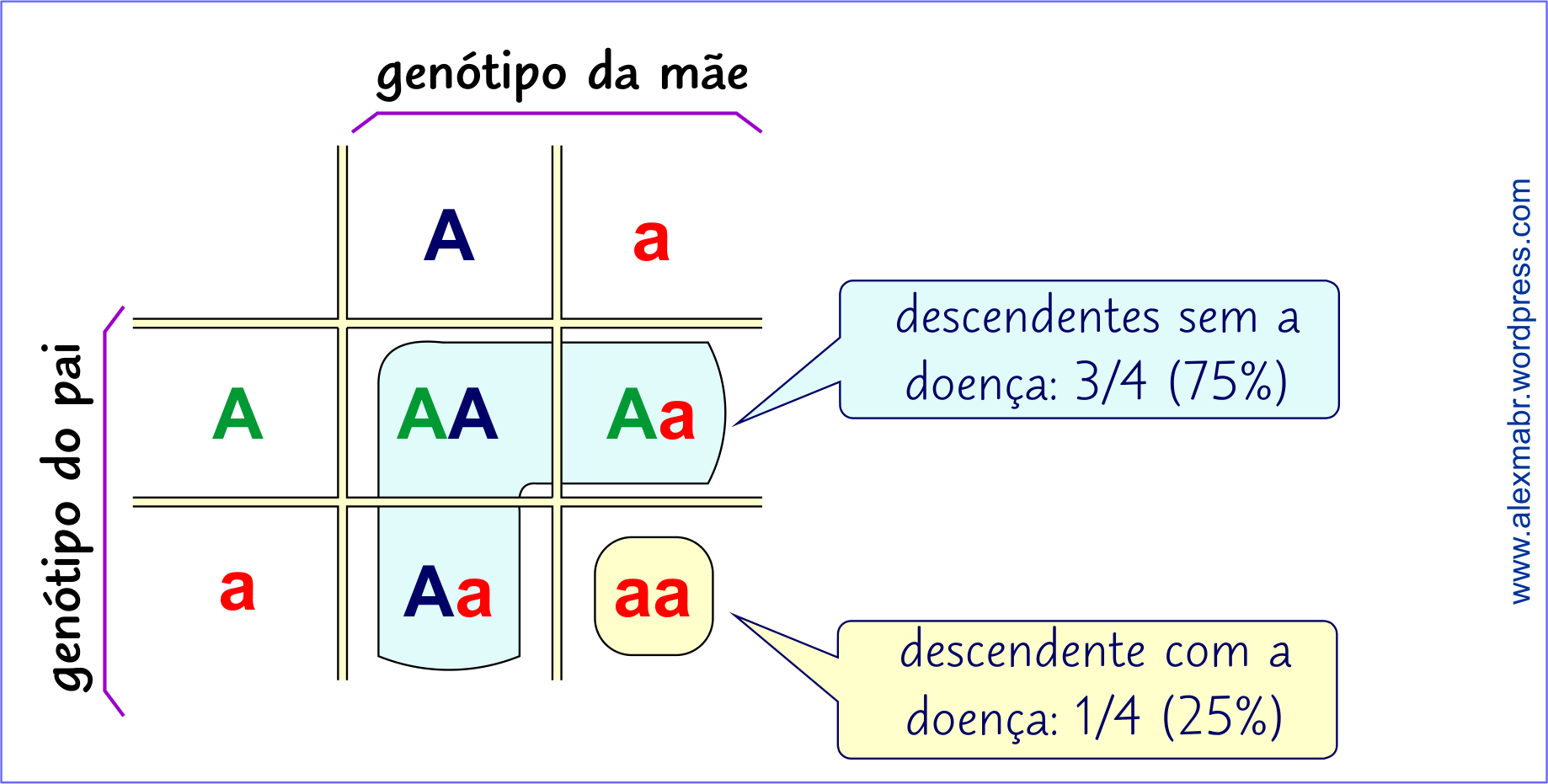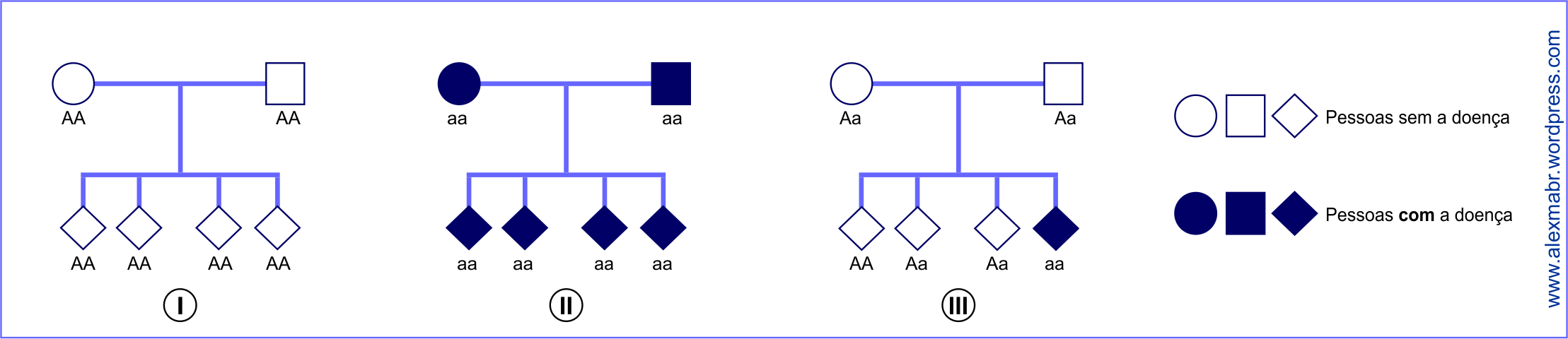 Já no heredograma III, há um casal heterozigoto (Aa). São indivíduos sem a Deficiência de Lipase Ácida Lisossômica, mas portadores do alelo determinante dessa doença. A probabilidade de que esse casal tenha uma criança com a doença é de 25% (uma chance em quatro).