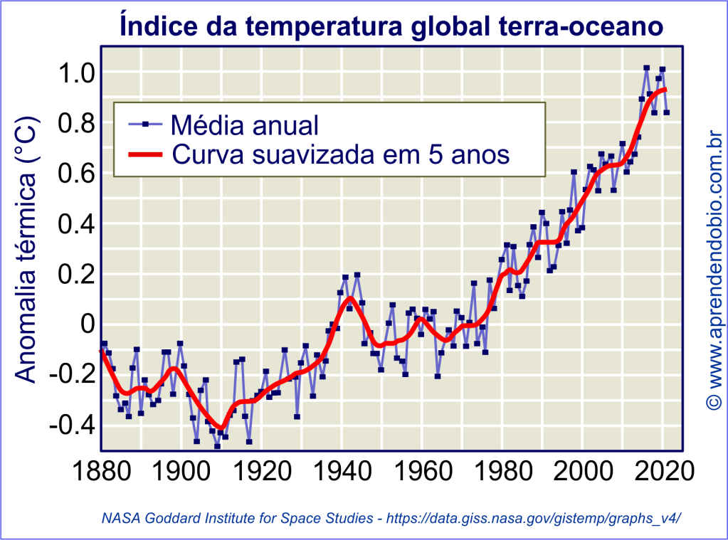 Aumento da temperatura média do planeta nos últimos 140 anos. Clique na imagem para ampliar.