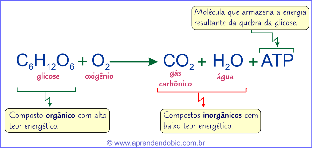 A respiração celular aeróbica é o processo através do qual moléculas orgânicas com elevado teor de energia (como a glicose) são oxidadas, resultando em componentes inorgânicos com reduzido conteúdo energético. A oxidação da matéria orgânica tem como objetivo a liberação de energia que será transferida para moléculas de ATP.