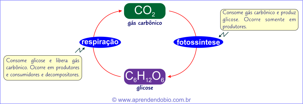 Esse processo ocorre no organismo dos produtores, dos consumidores e dos decompositores.